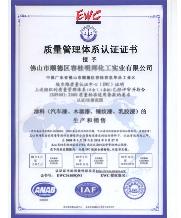 • 質量管理體系認證證書...